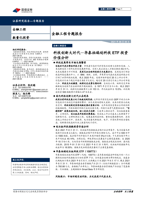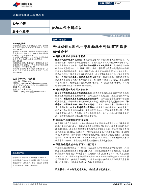 【国信证券】【20210905】金融工程专题报告:华泰柏瑞创科技ETF投资价值分析,科技创新大时代-20页