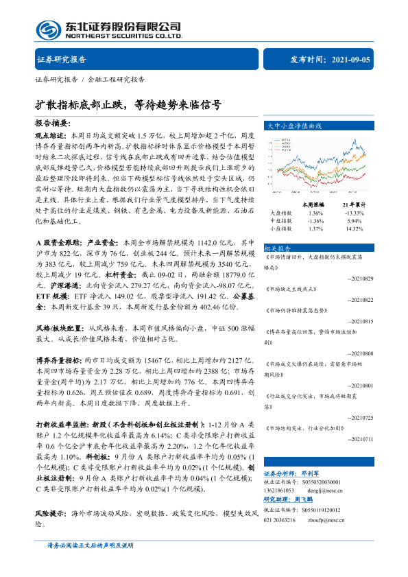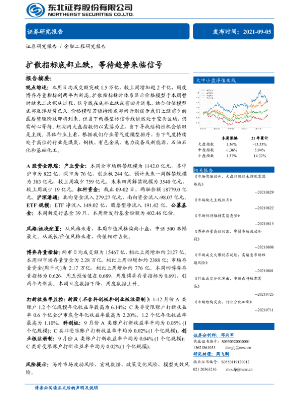 【东北证券】【20210905】金融工程研究报告:扩散指标底部止跌,等待趋势来临信号-30页