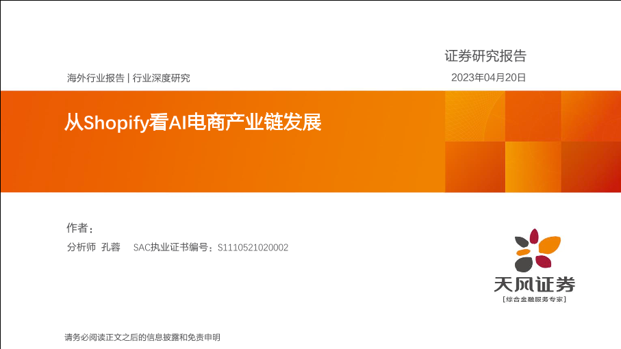 【天风证券】【20230420】电商行业:从Shopify看AI电商产业链发展-16页