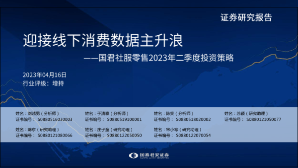 【国泰君安证券】【20230416】社服零售行业2023年二季度投资策略:迎接线下消费数据主升浪-42页