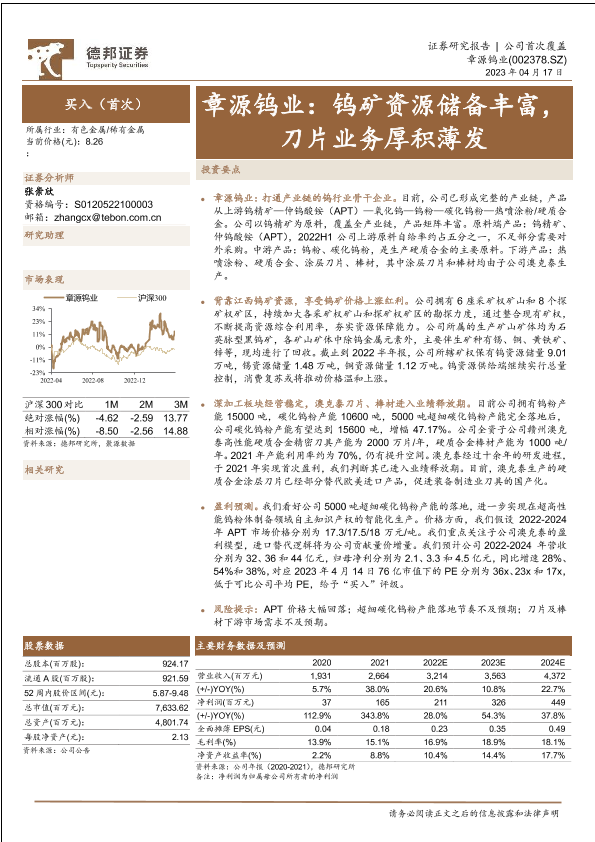 【德邦证券】【20230417】章源钨业:钨矿资源储备丰富,刀片业务厚积薄发-21页