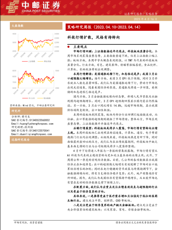 【中邮证券】【20230416】策略研究周报:科技行情扩散,风格有待转向-17页