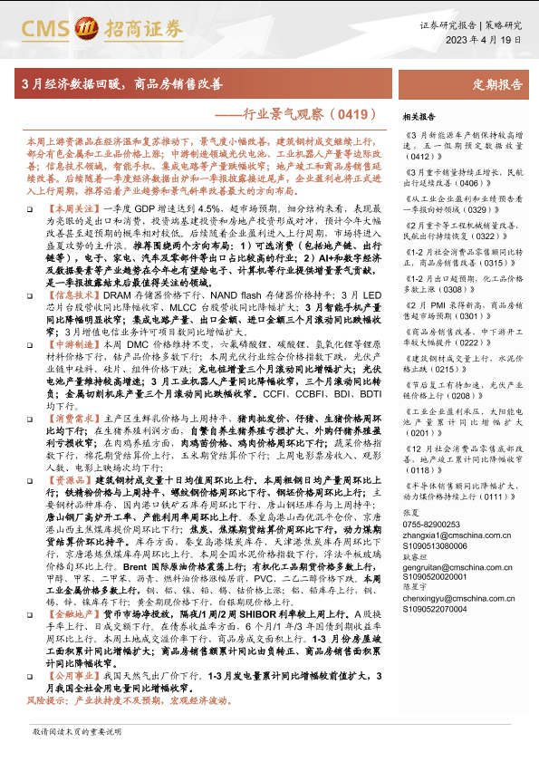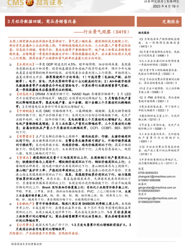 【海通证券】【20230419】行业景气观察:3月经济数据回暖,商品房销售改善-31页