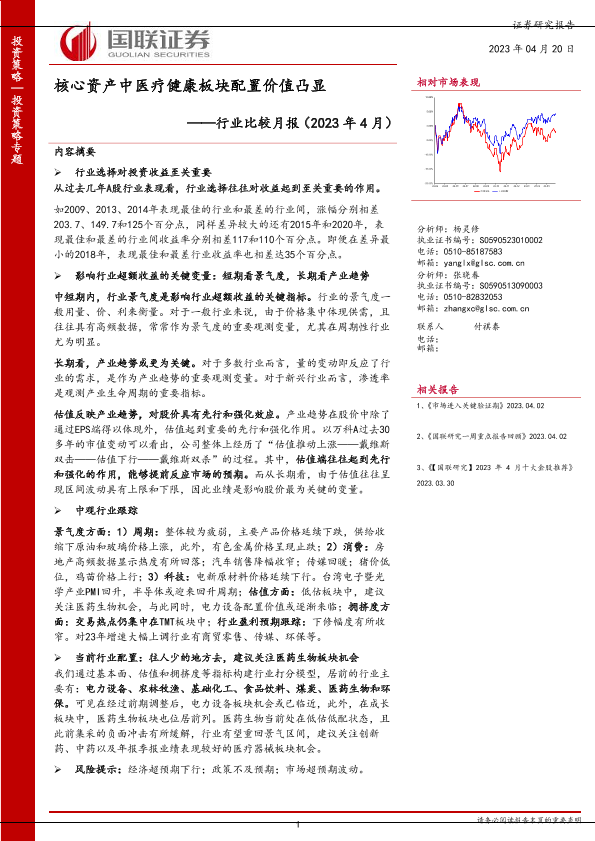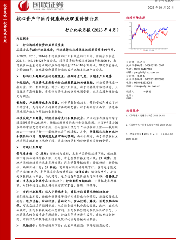 【国联证券】【20230420】行业比较月报(2023年4月):核心资产中医疗健康板块配置价值凸显-37页