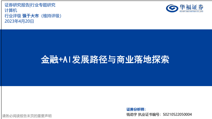【华福证券】【20230420】计算机行业专题研究:金融+AI发展路径与商业落地探索-21页