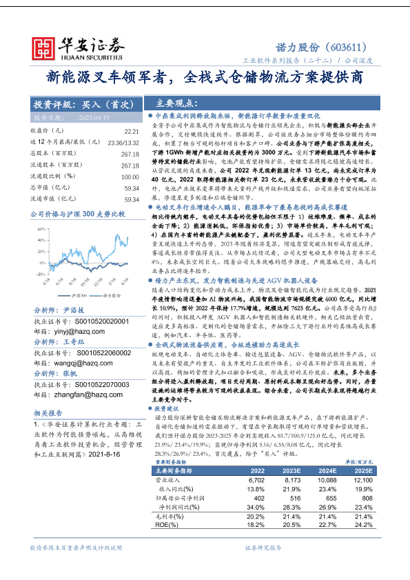 【华安证券】【20230419】诺力股份(603611)新能源叉车领军者,全栈式仓储物流方案提供商-31页