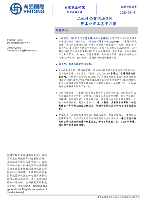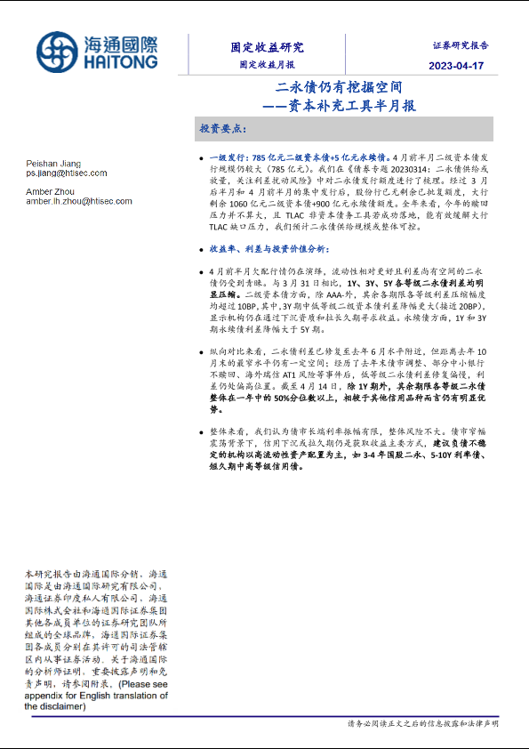 【海通国际】【20230417】资本补充工具半月报:二永债仍有挖掘空间-20页