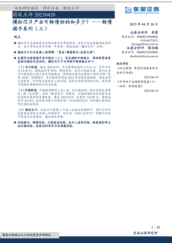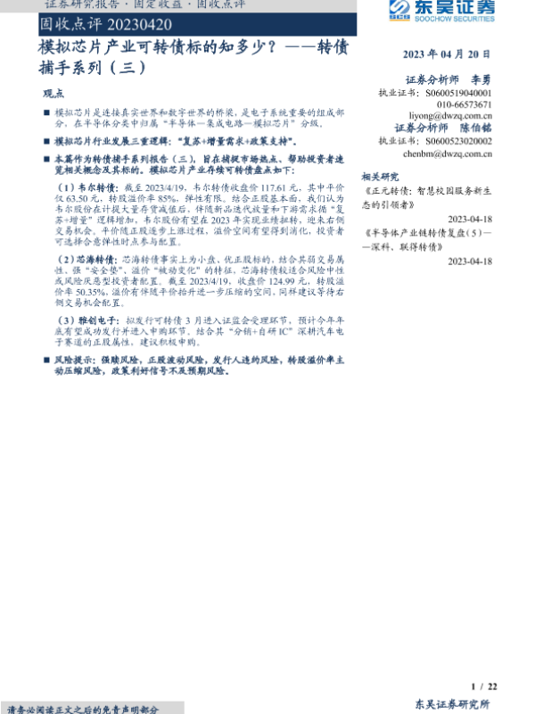 【东吴证券】【20230420】转债捕手系列(三):模拟芯片产业可转债标的知多少?-22页