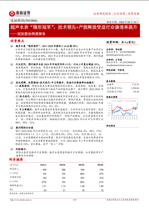 【浙商证券】【20230416】迈拓股份深度报告:超声水表“隐形冠军”,技术领先+产能释放受益行业渗透率提升-29页