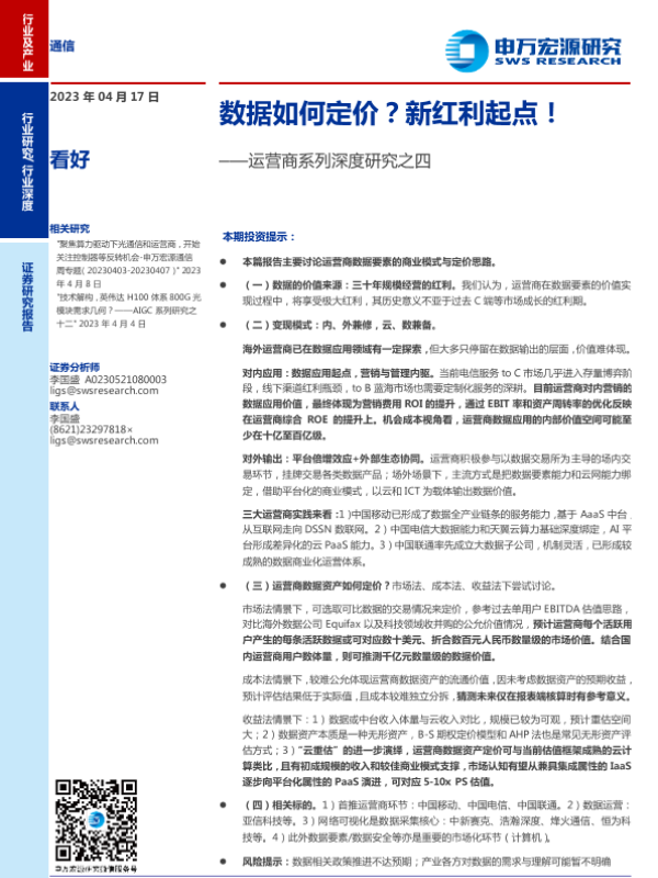 【申万宏源】【20230417】通信行业运营商系列深度研究之四:数据如何定价?新红利起点!-34页