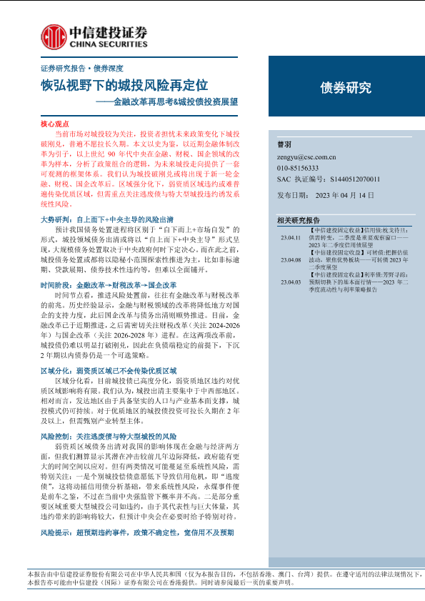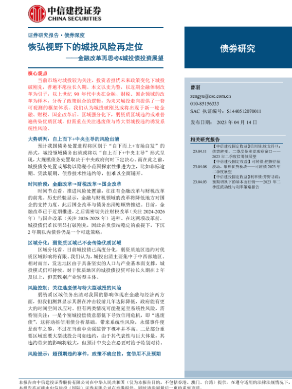 【中信建投证券】【20230414】金融改革再思考&城投债投资展望:恢弘视野下的城投风险再定位-20页