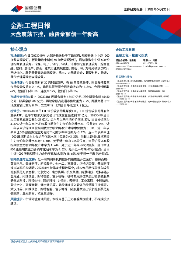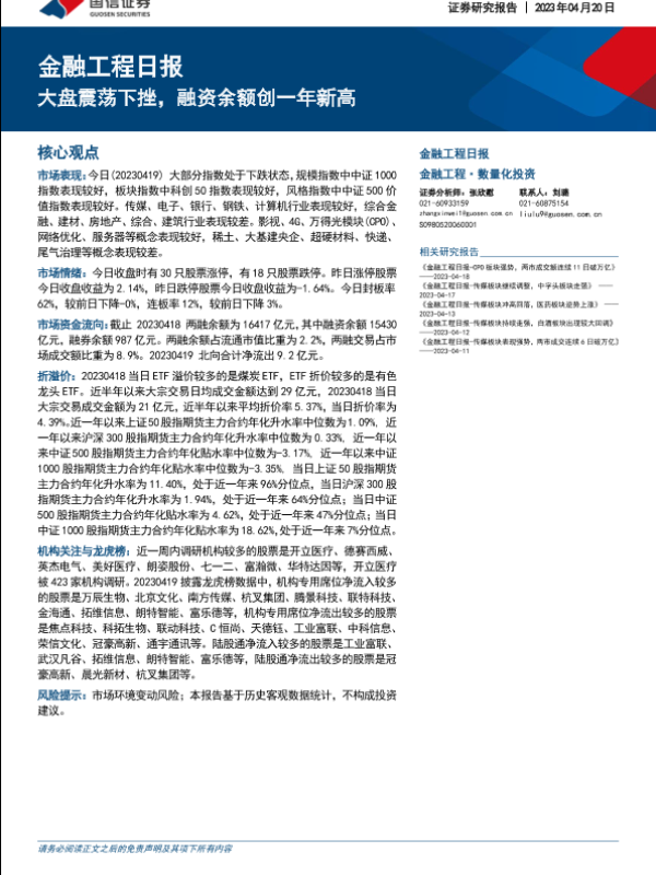 【国信证券】【20230420】金融工程日报:大盘震荡下挫,融资余额创一年新高-16页