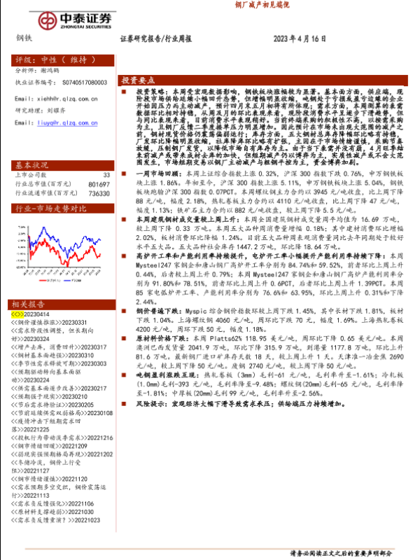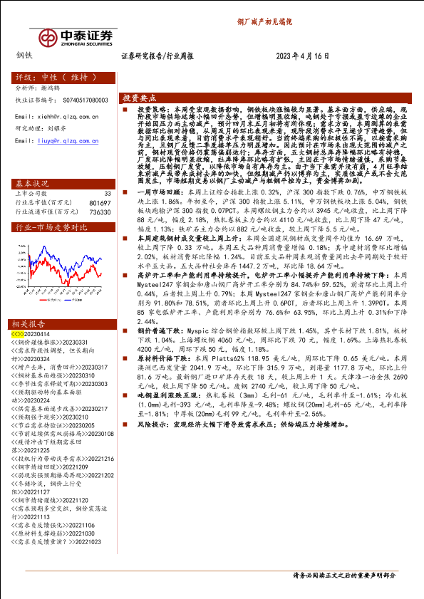 【中泰证券】【20230416】钢铁行业周报:钢厂减产初见端倪-15页