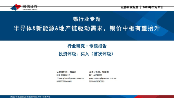 【国信证券】【20230227】锡行业专题:半导体&新能源&地产链驱动需求,锡价中枢有望抬升-39页