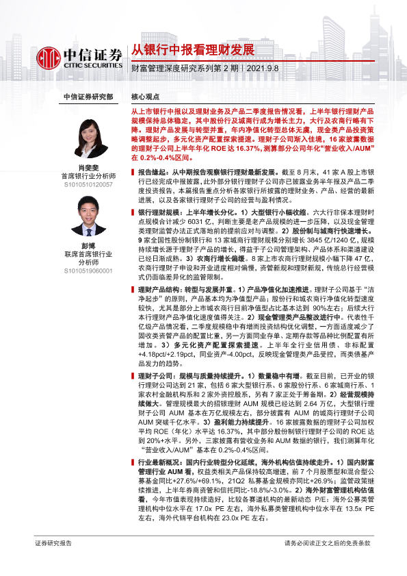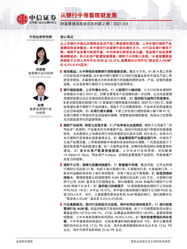 【中信证券】【20210908】银行业财富管理深度研究系列第2期:从银行中报看理财发展-16页