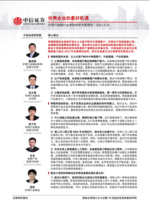 【中信证券】【20230420】非银行金融行业寿险转型专题报告:优秀企业的最好机遇-18页