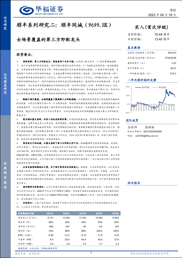 【华福证券】【20230418】顺丰同城(09699)顺丰系列研究二:全场景覆盖的第三方即配龙头-24页