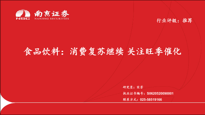 【南京证券】【20230420】食品饮料:消费复苏继续 关注旺季催化-28页
