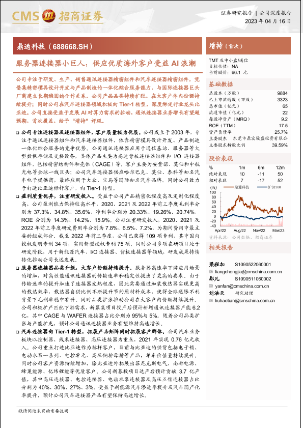 【海通证券】【20230416】鼎通科技(688668)服务器连接器小巨人,供应优质海外客户受益AI浪潮-24页