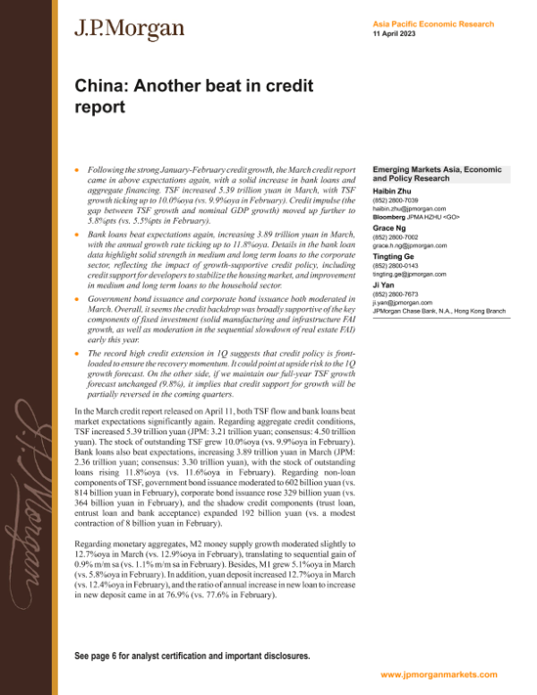 【J.P. Morgan】【20230411】JPMorgan Econ FI-China Another beat in credit report-9页