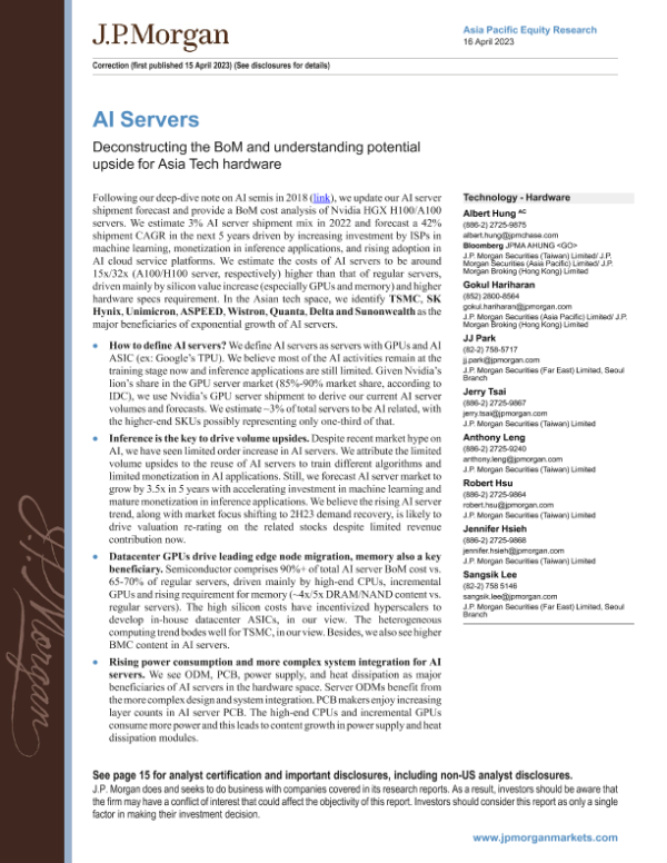 【J.P. Morgan】【20230416】JPMorgan-AI Servers Deconstructing the BoM and understanding potential upside for Asia Tech hardware-19页