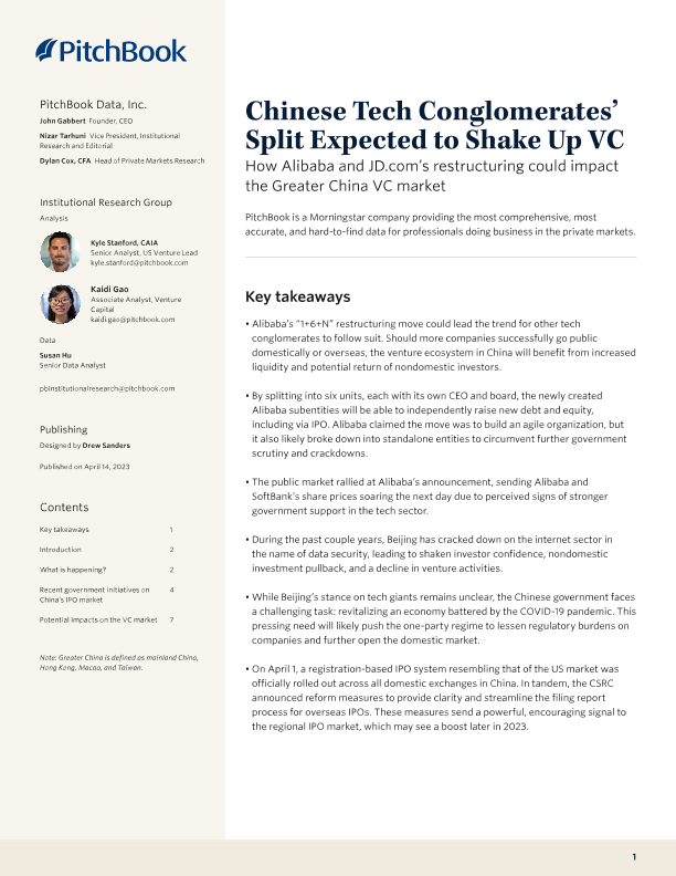 【PitchBook Data】【20230414】中国科技集团的分拆有望动摇风险投资-10页