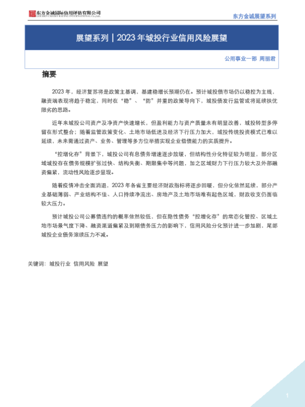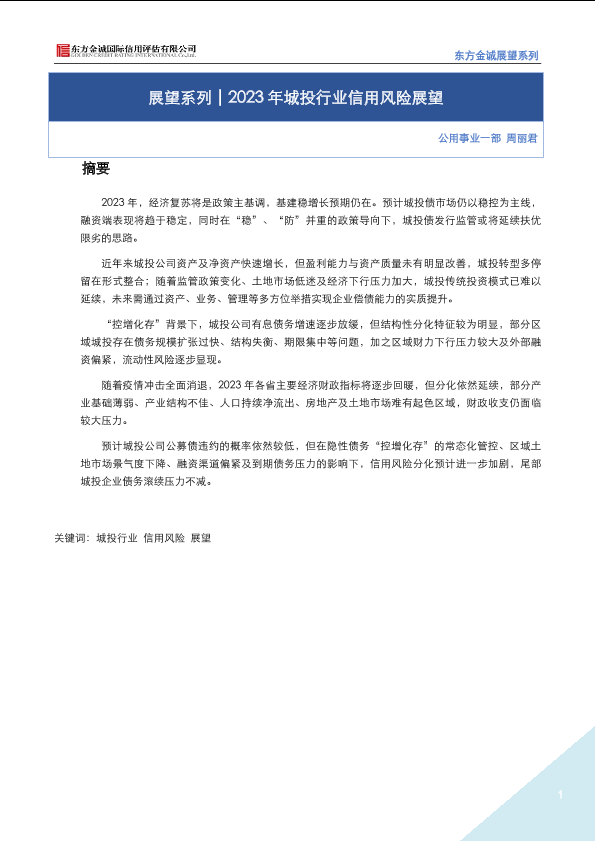 【东方金诚】【20230101】2023年城投行业信用风险展望-16页