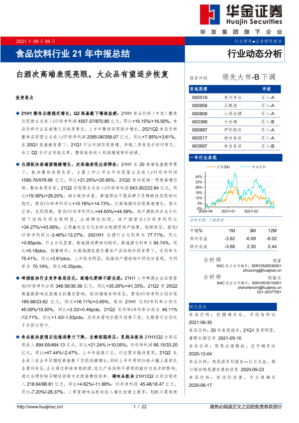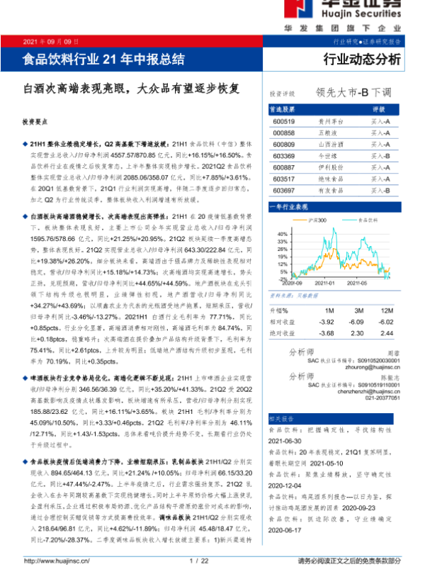 【华金证券】【20210909】食品饮料行业21年中报总结:白酒次高端表现亮眼,大众品有望逐步恢复-22页
