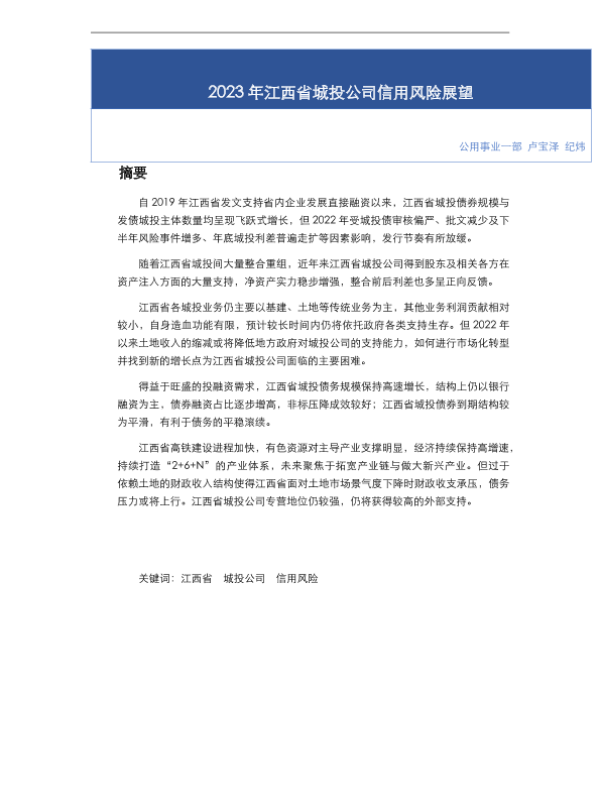 【东方金诚】【20230101】2023年江西省城投公司信用风险展望-21页