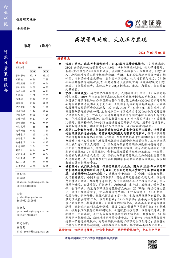 【兴业证券】【20210906】高端景气延续,大众压力显现-45页