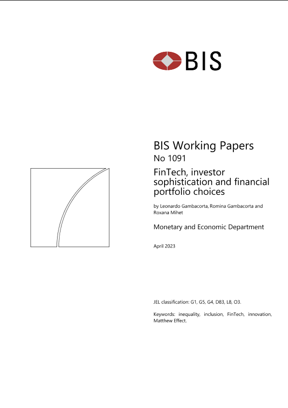 【Bank for International Settlements】【20230401】FinTech, investor sophistication and financial portfolio choices-62页