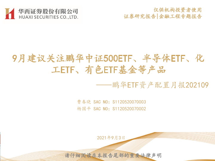 【华西证券】【20210903】鹏华ETF资产配置月报:9月建议关注鹏华中证500ETF、半导体ETF、化工ETF、有色ETF基金等产品-23页
