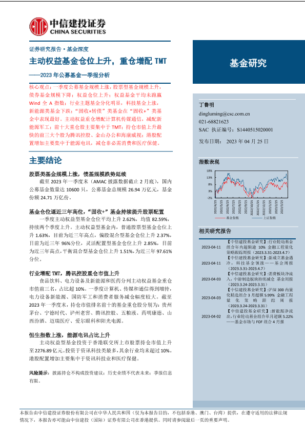 【中信建投证券】【20230425】2023年公募基金一季报分析:主动权益基金仓位上升,重仓增配TMT-21页