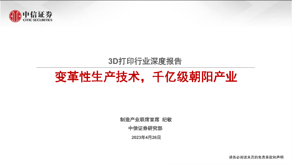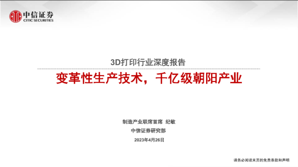 【中信证券】【20230426】3D打印行业深度报告:变革性生产技术,千亿级朝阳产业-35页
