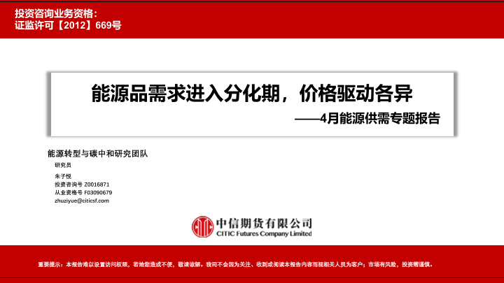 【中信期货】【20230427】4月能源供需专题报告:能源品需求进入分化期,价格驱动各异-81页