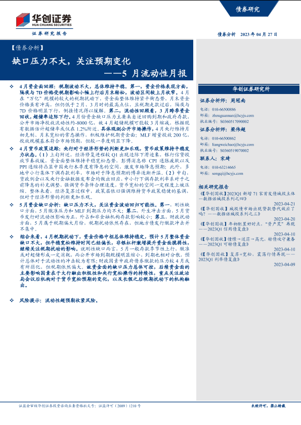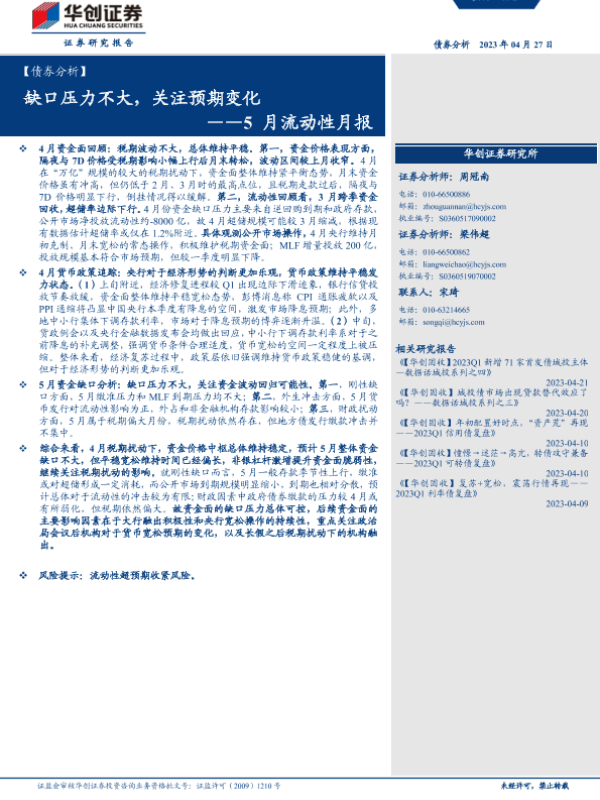 【华创证券】【20230427】5月流动性月报:缺口压力不大,关注预期变化-16页