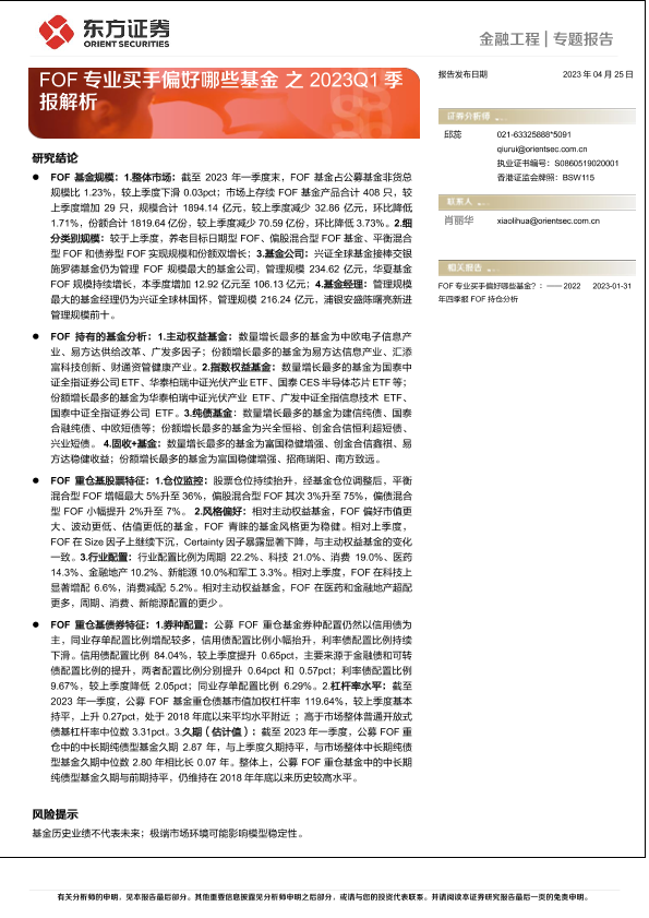 【东方证券】【20230425】FOF专业买手偏好哪些基金之2023Q1季报解析-25页