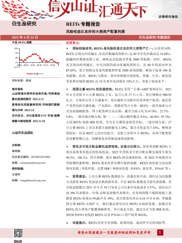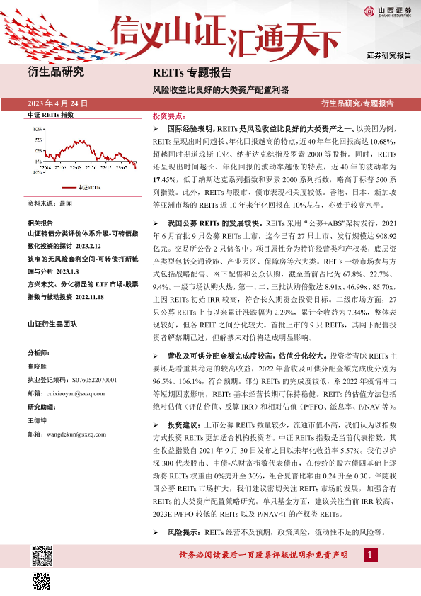 【山西证券】【20230424】REITs专题报告:风险收益比良好的大类资产配置利器-32页