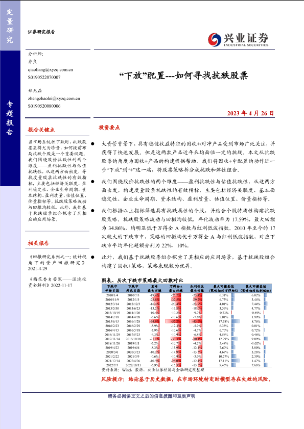 【兴业证券】【20230426】“下放”配置---如何寻找抗跌股票-32页