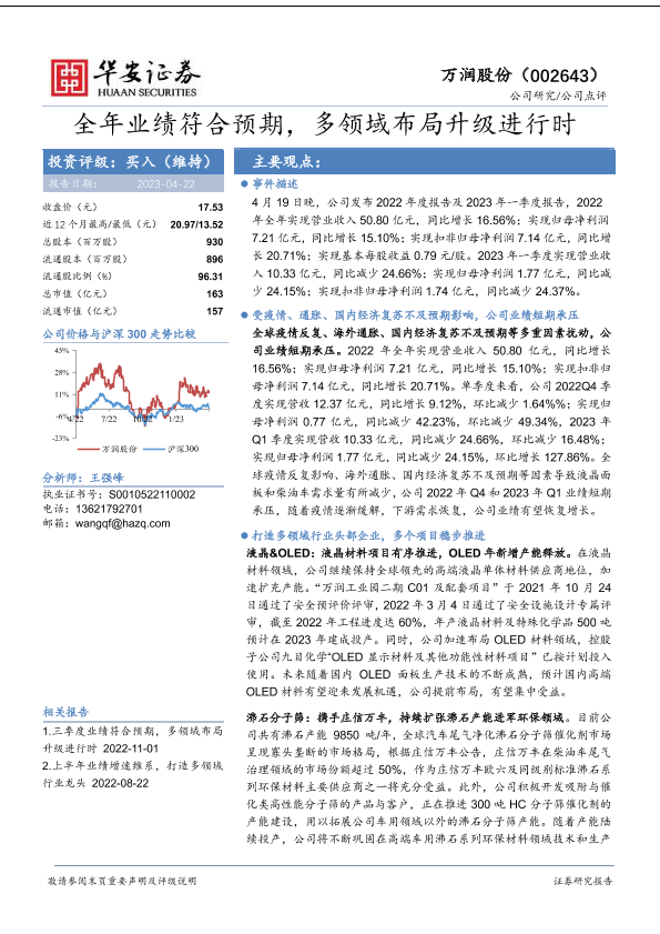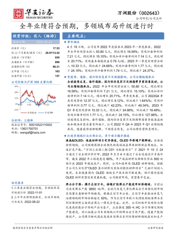 【华安证券】【20230422】万润股份(002643)全年业绩符合预期,多领域布局升级进行时-23页