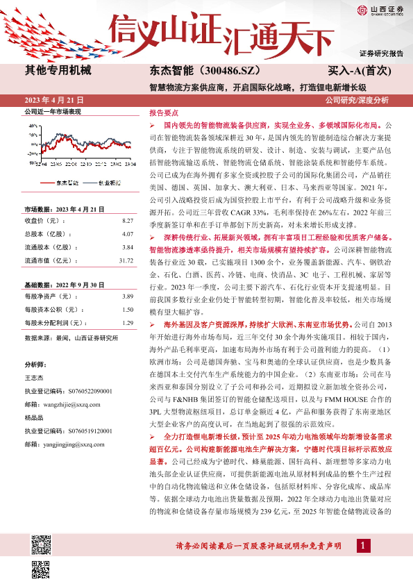 【山西证券】【20230421】东杰智能(300486)智慧物流方案供应商,开启国际化战略,打造锂电新增长级-37页