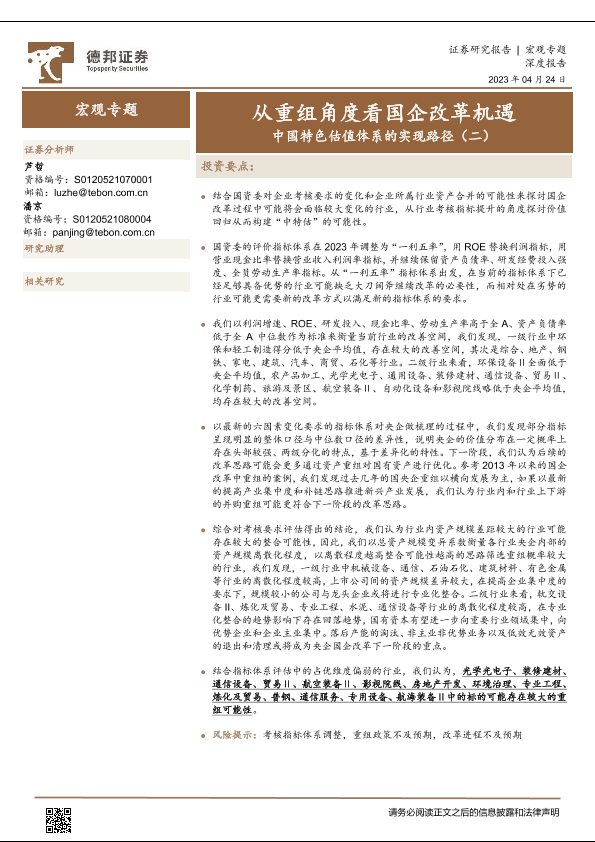 【德邦证券】【20230424】中国特色估值体系的实现路径(二):从重组角度看国企改革机遇-18页