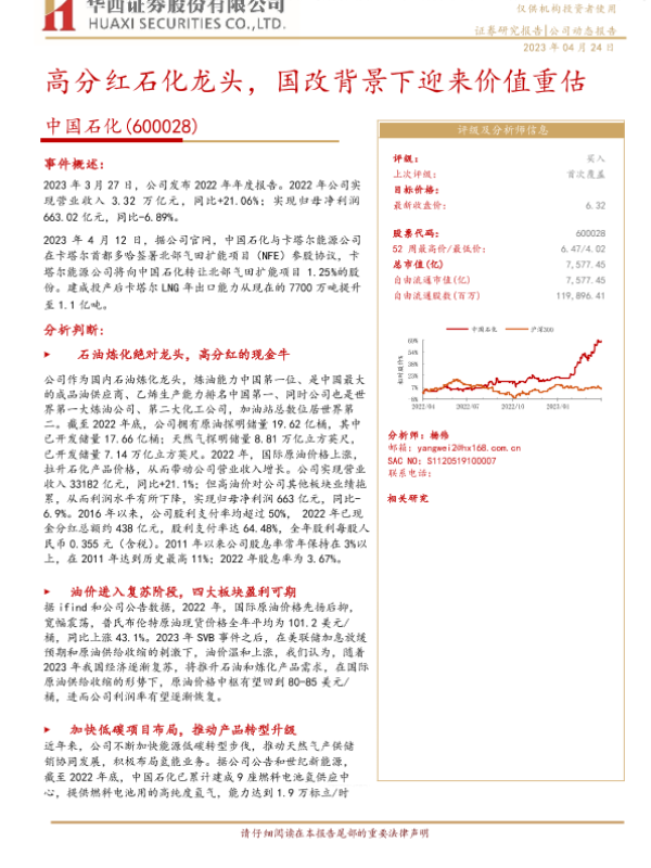 【华西证券】【20230424】中国石化600028.SH高分红石化龙头,国改背景下迎来价值重估-18页