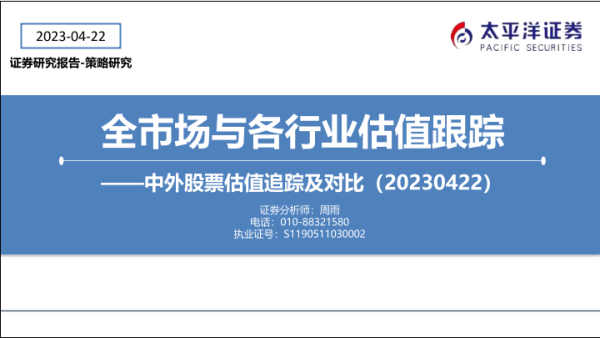【太平洋证券】【20230422】中外股票估值追踪及对比:全市场与各行业估值跟踪-27页