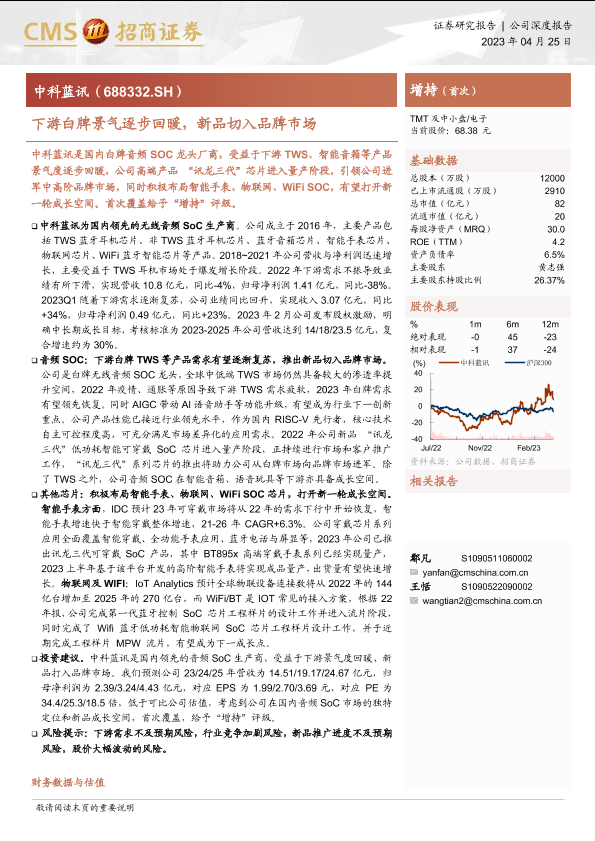 【海通证券】【20230425】中科蓝讯(688332)下游白牌景气逐步回暖,新品切入品牌市场-20页