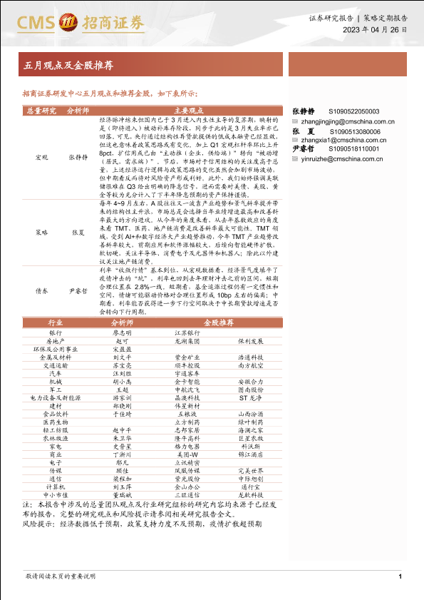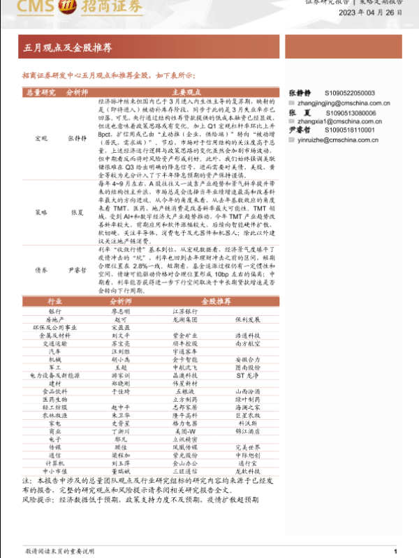 【海通证券】【20230426】五月观点及金股推荐-27页
