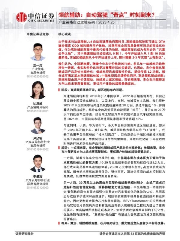 【中信证券】【20230425】产业策略自动驾驶系列:领航辅助,自动驾驶“奇点”时刻到来?-54页