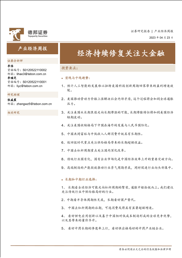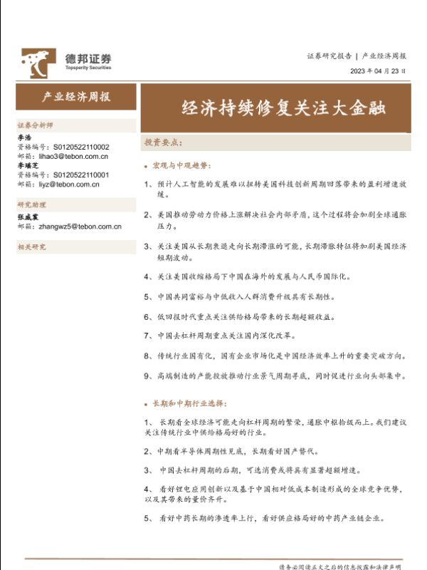 【德邦证券】【20230423】产业经济周报:经济持续修复关注大金融-24页