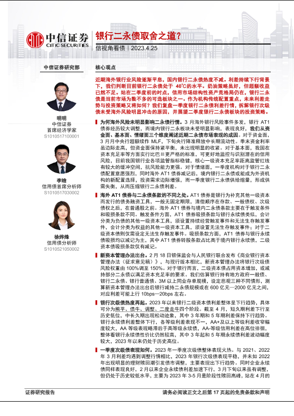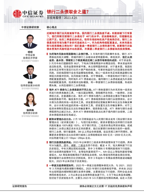 【中信证券】【20230425】信视角看债:银行二永债取舍之道?-18页