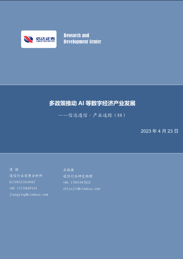 【信达证券】【20230423】多政策推动AI等数字经济产业发展-27页